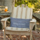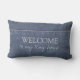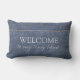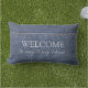 Rustic faux denim Blue Välkommen till min lilla Lumbar utomhus Pillow. Du kan enkelt lägga till en egen text för att anpassa den.