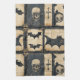 Rustic farmhouse Halloween-lappverk med fladdermus och döskallar motiv på ett denim-texturerat rutnät. Varm, nödlidande stil - perfekt för mysigt falldécor, säsong-gåvor och höstsammankomster.