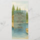 Sjö Tahoe Mountain Rustic Wedding Glow-menyn och -programmet i ett kort Denna meny och programdesign fångar Sjö Tahoes charm med gräs träd, en serene sjö och rustic lodge inslag. Perfekt för alpina destinationsbröllopsreceptioner. Anpassade enkelt till kostym din händelse. AI-assisterad vattenfärg struktur förbättrar dess skönhet. Hänvisningar till media i social kan ge dig en liten provision utan kostnad för extra.