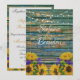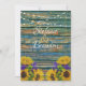 En Rustic Distress Blue Fence och Daisys bröllopsinbjudan med ett vackert vågrät, ett blått stängsel, en lätt genomskinlig daisy och en skymningsljus.
