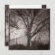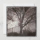 Rustic Distress Träd Silhouette Grunge Design vid solnedgång i ett djupt lila dimma färg med stängsel i bakgrunden. Det har en träd silhuett med stränder. En underbar höst- eller höstkonstruktion.