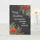 God jul för dotter och son i jokertecken i rustiska vattenfärgpoinsettias, bladbakgrunden och den krita bakgrunden.