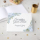 Den här eleganten kommer gästen bok att som en speciell minnesstund för din bröllopsdag. Den har en vacker handmålad chic med vattenfärg ro, blommar och eukalyptus löv i skuggor av dammig blått och sage grönt. Eleganten skrivs i ett skript med blanksteg för parets och bröllop datum i namn. Perfekt för att skapa varaktiga minnen från din speciella dag!