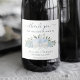 Dessa vackra mousserande vin-märken är perfekt för att tacka speciella gäster från bröllop eller medlemmar av brudens sida. eller för din repetitionsmiddag, möhippa eller mottagning. Den roustiska boho-chicen har ett kluster med handmålad vattenfärg ro, blommar och grönt i skuggor av dammig blå grönt och sage. Texten lyder Tack för att fira med oss. Det finns utrymme för namn och bröllop-datumet.