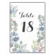 Rustic Dusty Blue Watercolor Blommigt Bröllop Bordsnummer
