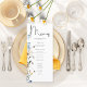 Upptäck det vackra elegansmönstret med vår långa rustiska bröllop-meny, där skönheten vid tidpunkter passar naturens känsliga nåd. Mot en pristinvit bakgrund bildas en handmålad vattenfärgad bukett som visar en harmonisk blandning av dammiga blå och mjuka gulter av vilda blommor, vid sidan av renheten hos vita daisy och ro. Som om den plockades rakt från en sol-kyld ängsskugga fångar den här inbjudan kärnan av oförstörd skönhet och avlägsnande av kärlek. De mjuka nyheterna och de invecklade detaljerna om den vildblommiga buketten satte scenen för ett bröllop som är lika naturligt som spännande. Inbjudan dina gäster till i karmen på din kärlek-historia med en inbjudan som påminner om värmen i din förbindelse. Välj vår design för att förmedla ärligheten i din resa och bjuda in nära och kära till att bevittna uppblåsningen av ett kärlek som är lika tidlöst som själva landskapet. Kortet är en del av Rustic Dusty Blue Wildblommor & Daisy bröllop-svitsamlingen skapat av enbart Farmhouse Press.