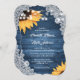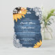 Rustic Dusty Blue Wood Snöre Solros Bröllop Inbjudningar