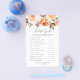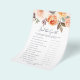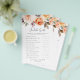 Den här jordklotet Hitta gästbröllopsmatchen är perfekt för ett fallbröllop. Elegantens jordtonskonstruktion har vattenfärgsblommor i terracotta, koppar, bränd orange, persika, rosa och gräddvita toner med vintage boho stil. Anpassa kortet med namn på bruden och brudgummen och bröllop-datumet. Du kan anpassa spelfrågorna genom att klicka på knappen "anpassa".
