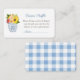 Blommor i hösttoner (, orangar, ) i en hingeringst i burk vas för denna babyduschutrymmeskort. Den omvända funktionen har en gingham-kontroll i vitt och mellblått (du kan ändra blått till valfri annan färg genom att skriva in verktyg och ändra bakgrunden färg).