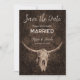De här bröllop 5 x 7 sparar datumplatta kort med en mycket rustik elegant land brun western vintage stil med . Gammal vilda western inspirerade till antika coolor, trendig-skalle. Upphovsrätt Marg Seregelyi Fotography.