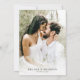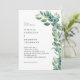 En Elegant Eucalyptus gienery bröllopsinbjudan med enkel och minimal typografi och ett foto av paret på baksidan av kortet.