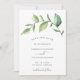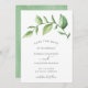 Rustic sparar datumkortet med en enkel utformning med en vattenfärgad grönt som målas upp med stora löv, över en vit bakgrund. Nedan finns dina detaljer i ett mjukt grått och baksidan har en ljust grönt vattenfärg tvättat. En botanisk elegant som är underbar för ett firande under sommaren.