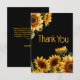 Rustic, elegant födelsedagsfest Tack. Du kort med gult solblommor på svart bakgrund. Kontakta mig om du behöver hjälp med dina anpassningar eller om du vill be om ytterligare matchning eller samordning av Zazzle-produkter för firande.
