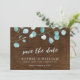 Rustic Eucalyptus & Brown Wood Save Date Card Spara Datumet