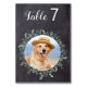 Bordsnummer efter från dina sällskapsdjur! Inkludera din bästa hund, bästa katt och vilket husdjur som helst i bröllop med sina egna bordsnummer till dina gäster. Perfekt för hundälskare, och ett speciellt bordsnummer för hund kommer att vara en slå i bröllop. Enkel rustik skiffer med löv från eucalyptus. Anpassa det här lilla bröllop-tecknet med ditt favoritfoto av hund, katt, valp eller kattunge och bordsnummer! COPYRIGHT © 2020 Judy Burrows, Black Hund Art - Med alla Höger reserverade. Rustic Eucalyptus Chalkboard Hund Photo Pet Bröllop Bordsnummer