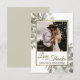 De vackra bröllop-tackkorten visar ditt foto i en faux foil golden ram, omgiven av handmålade sprickor av gyllene gräs och grönt eucalyptus löv. Rubriken lyder: Kärlek och Tack, med namnen nedan. Det här tackkortet är enkelt, rustiskt och elegant. Det är det perfekt sättet att låta dina vänner och familj få veta hur mycket du uppskattar deras kärlek och stöd.