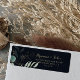 Den här blommigten för retur-blått återlämningsnummer för eucalyptus guld är perfekt för ett enkelt bröllop. Den här konstnärliga utformningen har handritad blommigt från guld och grönt av eukalyptus i en mörk blått bakgrund, som inspirerar naturskönheten.