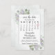 Det här bröllop spara datum-kortet är enkelt, rustiskt, elegant och vackert. Den har en anpassade med ett hjärta runt ditt bröllop-datum i ett vitt ram omgivet av en bevy av handmålade löv av eukalyptus och lavenderblommor på en marmorerad dammig blå grått-bakgrund. Rubriken lyder: Spara datum i äldre skriptcalligrafi med utrymme för parets namn, datum och plats. Baksidan har en liten bukett bunden med en vit bukett. Underbart sätt att låta dina vänner och din familj få veta om ditt kommande bröllop.