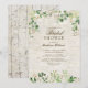 Skapa perfekten inbjudningskort för möhippan med denna utformning som innehåller vattenfärgen eukalyptus och fern botaniska grey och sträng ljus, på en faux birch wood-bakgrund. Copyright Elegant Inbjudan, alla höger reserverade.