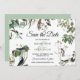 Ett vackert sätt att spara datumkortsdesignen med rustik eukalyptus löv, vintage greenergiy och fåglar. En elegant som är perfekt för alla bröllop-teman. Baksidan av kortet visar ett minimalistiskt monogram. Det finns också möjlighet att matcha bröllopsinbjudningar och andra artiklar i kontorsartiklar.
