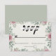 En romantisk OSA kort som är designad för att på ett vackert sätt komplettera vår Rustiska eukalyptus och Rosa ros bröllopsinbjudan. Med samma kräm canvas struktur inramad med vattenfärgen eukalyptus löv och mjukt dammigt rosa ros blandar den här designen rustiskt grönt med tidslösa blommigtar för ett elegant, naturinspirerat utseende.