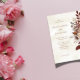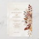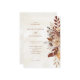 En vacker rustik bröllopsinbjudan med vattenfärg faller blommor i jorda terracotta, bränd orange och beige-toner. Perfekt för hösten bröllop, boho firande och mysiga, rytmhärtiga evenemang. Med elegantens typografi och en mjuk vattenfärgsbakgrund för ett varmt och romantiskt beteende.