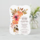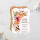 Vackra terrakotta, bränd orange och rosa höstblommor och löv finns på dessa falltematiska inbjudningskort för möhippa. MATCHING-objekt i vår samling.