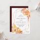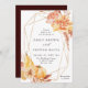 Den här bröllopsinbjudan innehåller roliga vattenfärgblommor och pumpor i bränd orange, guld, terracotta, burgundy, , beige och brunt pampasgräs med ett faux guld geometriskt ram. Om du vill ha en mer avancerad anpassning av den här designen klickar du på länken "anpassa ytterligare". Matchande objekt är också tillgängliga.