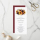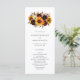 Blommigt solrosblomma bröllopsprogram med en rustik bukett med vattenfärgade solblommor, röd ros, lila blommor och grönt. Det här eleganten är underbart för en boho temed fall bröllop.