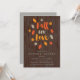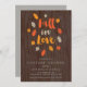 En automatisk typografisk par/gemensam inbjudan med frasen "fall i kärlek" i det moderna handskrivna stil-penselskriptet och fallande illustrerade löv. Inbjudan kan vara helt personlig med din händelseinformation och höst färger funktioner för orange, brun, senapsbaserad gult/hörn. Baksidan är i fast grått.