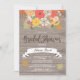Rustik Fall i Kärlek i inbjudningskort för möhippan sjunker blommor och löv på träbakgrunden.