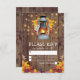 Rustiska svarskort för landsbyggsbröllopet med en bakgrund av trä, höst löv, ett ljus med ljus, ljus med snörvning och en modern osa.