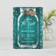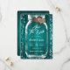 Rustiskt teal-bröllop spara datum-kort med mynning burk och brännhjärtor mot en lingbakgrund. Anpassa enkelt den romantiska onlinen för rustik teal bröllop spara datum. Matchningsartiklar som är tillgängliga för att komplettera detta teal bröllop spara datum-kort.