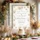 Modern bågbröllop i stil (du kan ändra all händelseinformation till kostym i ditt eget tillfälle). Elegant-, vit- och orange-pumpor med vilda höstblommor och löv-löv som börjar vända färg. Baksidan har en lätt, rustik träbakgrund. Vi kan ändra på det för ett enkelt färg. Audrey Jeanne Roberts ©, målad och grafiskt designad av internationellt licensierad konstnär och formgivare