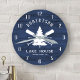 Rustic Family Sjö House Fir Träd marinblå Wood Rund Klocka