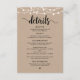 Det här är Rustic Farm, String Ljus, Black Script, Bröllop Details Enclosure Card, där du kan inkludera din bröllopsmottagning, boendealternativ, webbplatsen för bröllop med flera. Du kan ändra teckensnittet färg och lägga till bröllop i matchande teckensnitt/text. #TeeshaDerrick