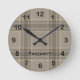 Rustic Farmhouse Beige Grey Plaid Tartan Rund Klocka