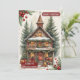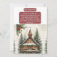 A rustic farmhouse is an experience. At the core of this holiday style is vintage texture, whitewashed wood, reclaimed planks, burlap ribbons, galvanized metal, frosted pinecones, and soft wool knits. The illustration has a country cottage with pine trees decorated with Christmas holly berry and a greenery wreath. Reverse side has a similar design. The card has warm greeting and wishes that can be personalized on front and reverse sides.