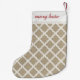 Rustic Faux Burlap och White Moroccan Quatrefoil Liten Julstrumpa