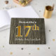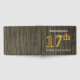 Gästsymbolen bok har ordnumret "17:e" med ett faux guld-liknande utseende. Den har också en skräddarsydd namn och en rustik träbakgrund. Den skulle kunna användas i party för någon som firar sin sjuttonårsdag. [~Z0000053]