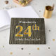 Gästsymbolen bok har ordnumret "24:e" med ett faux/imitation guld-liknande utseende. Den har också en skräddarsydd namn och en rustik träbakgrund. Den skulle kunna användas i party för någon som firar sin tjugofjärde födelsedag. [~Z0000053]