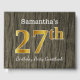 Gästsymbolen bok har ordnumret "27:e" med ett faux/imitation guld-liknande utseende. Den har också en skräddarsydd namn och en rustik träbakgrund. Den skulle kunna användas i party för någon som firar sin tjugosjunde födelsedag. [~Z0000053]