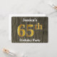 Den här inbjudan har ordningstalet "65e" med ett faux guld-liknande utseende. Den har också en skräddarsydd namn och en rustik träbakgrund. Händelseinformationen på baksidan kan anpassas. Det skulle kunna användas för människor i inbjudan till någons sextiofem födelsedagsfester. [~Z0000016]