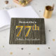 Gästsymbolen bok har ordnumret 77th med ett utseende som liknar faux/imitation guld. Den har också en skräddarsydd namn och en rustik träbakgrund. Den skulle kunna användas i party för någon som firar sin sjuttiosjunde födelsedag. [~Z0000053]