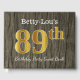 Gästsymbolen bok har ordnumret "89:e" med ett faux/imitation guld-liknande utseende. Den har också en personlig namn och en rustik träbakgrund. Den skulle kunna användas i party för att fira deras åttionionde födelsedag. [~Z0000053]