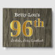 Gästsymbolen bok har ordnumret 96th med ett utseende som liknar faux/imitation guld. Den har också en skräddarsydd namn och en rustik träbakgrund. Den skulle kunna användas i party för att fira 96-årsdagen. [~Z0000053]