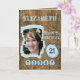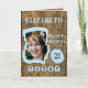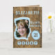 21:a födelsedag: hälsningskort. Lägg till foto och namn. Designad med brunört vävt träbakgrund. 21 i dag, eller ändra åldern till kostym. Brun och blå.