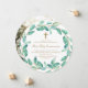 Botaniskt eukalyptus Löv med Kor Religiösa Första Heligan Kommuniformer Fotoinbjudan i Sage Grönt och White med Guld Färg Text och Kor.