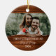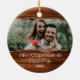 Fira din första jul som ett gift par med den här vackra, rustiska prydnaden! Med den här designen får du en lysande bakgrund med träeffekt som gör att du kan ladda upp ditt favoritfoto från bröllop och anpassa det med namn och året. Texten "Första julen som Mr & Mrs" visas elegant och skapar det här som en perfekt för nylweds skull