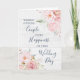 An elegant wedding day congratulations card for a wonderful couple with delicate blush pink watercolor flowers, pastel greenery, and a rustic wood pattern.